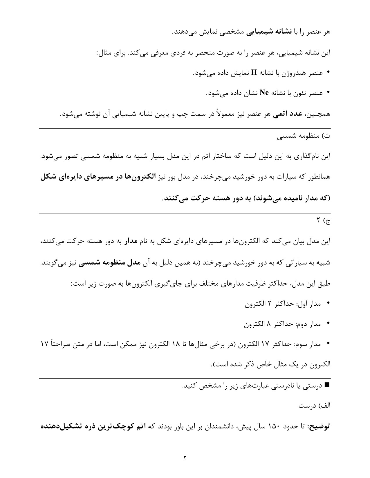 پاسخنامه علوم خیلی سبز هشتم فصل سوم (از درون اتم چه خبر؟)، فوق جامع و پر از نکته