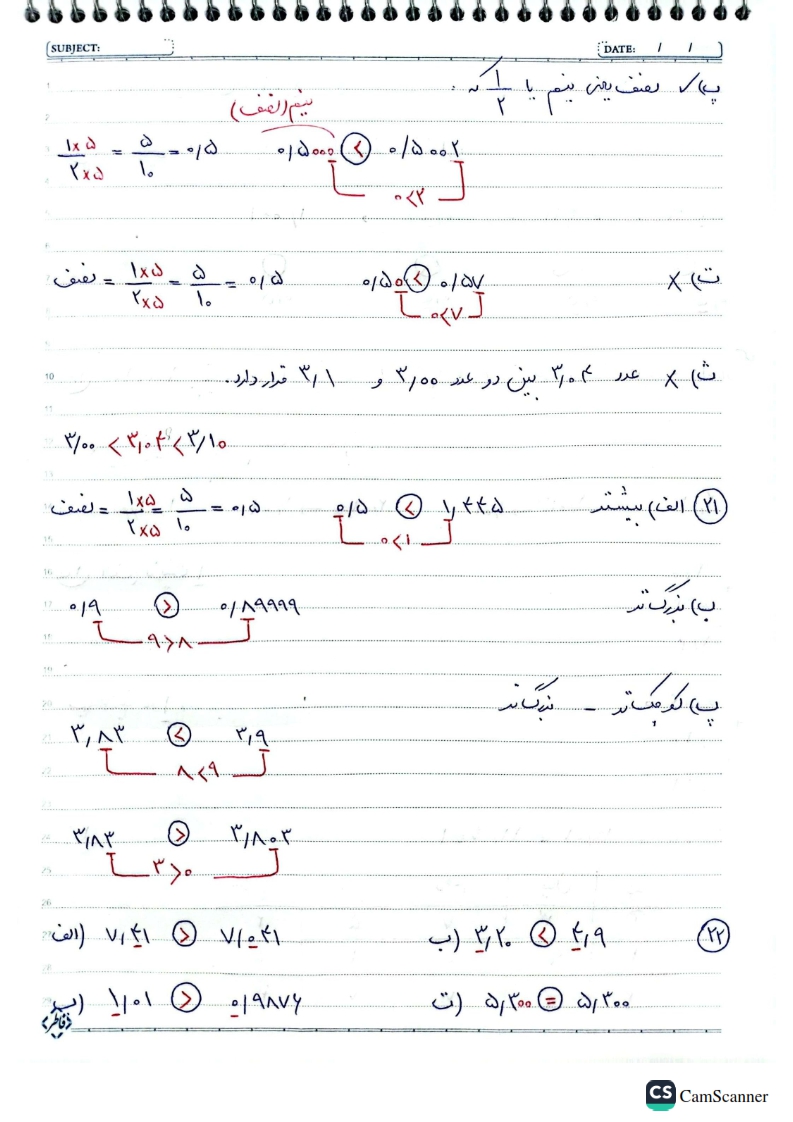 پاسخنامه کتاب کار ریاضی خیلی سبز ششم، فصل 3 (اعداد اعشاری)، فقط پاسخنامه