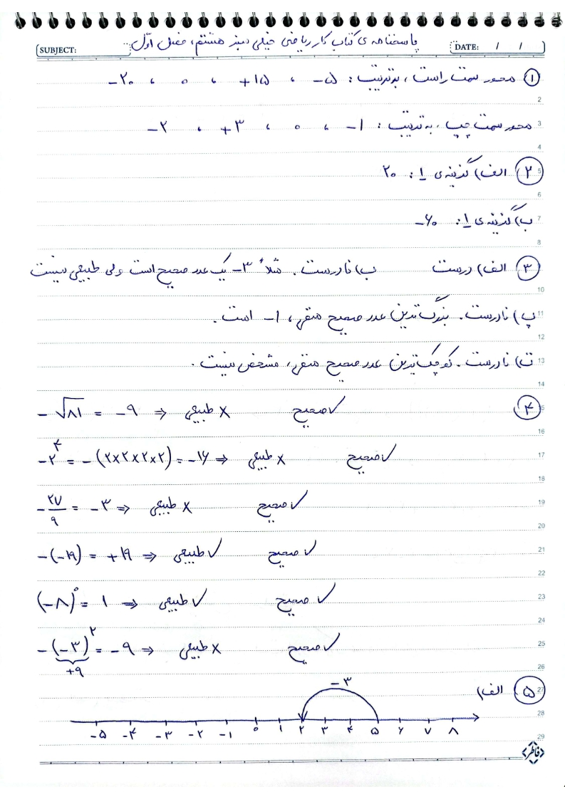 پاسخنامه کتاب کار ریاضی خیلی سبز هشتم، فصل اول (عددهای صحیح و گویا)، فقط پاسخنامه