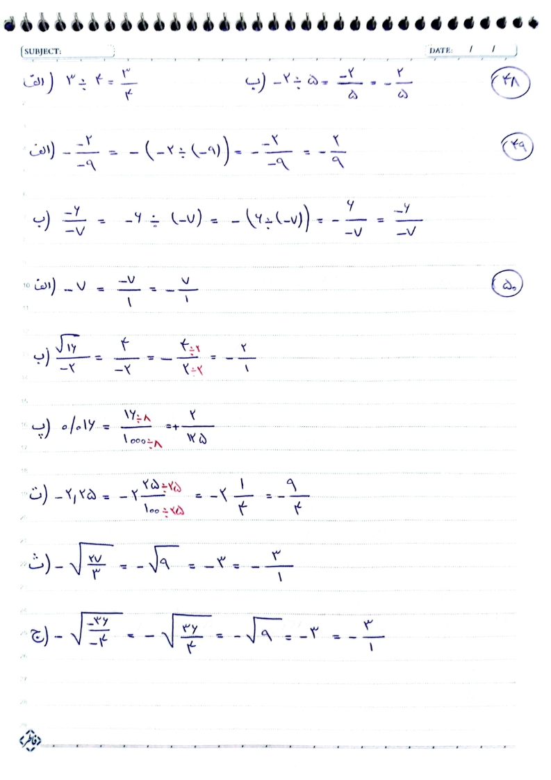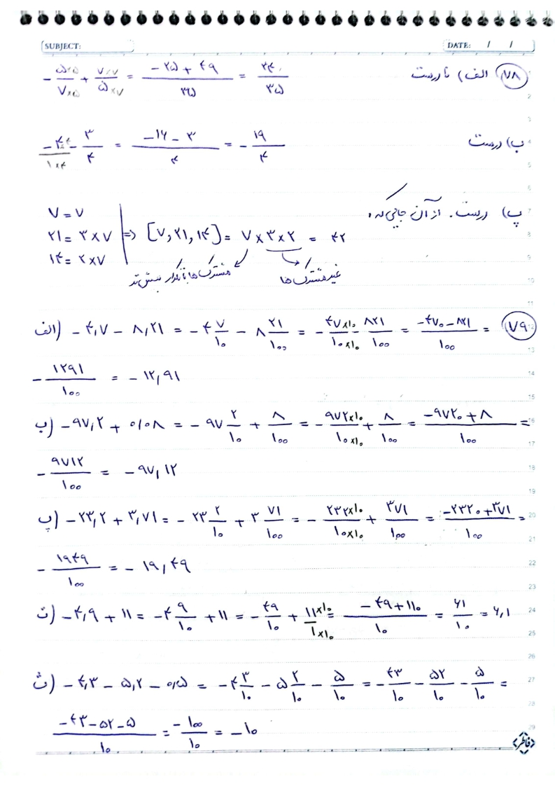 فصل / درس: فصل 1: عددهای صحیح و گویا