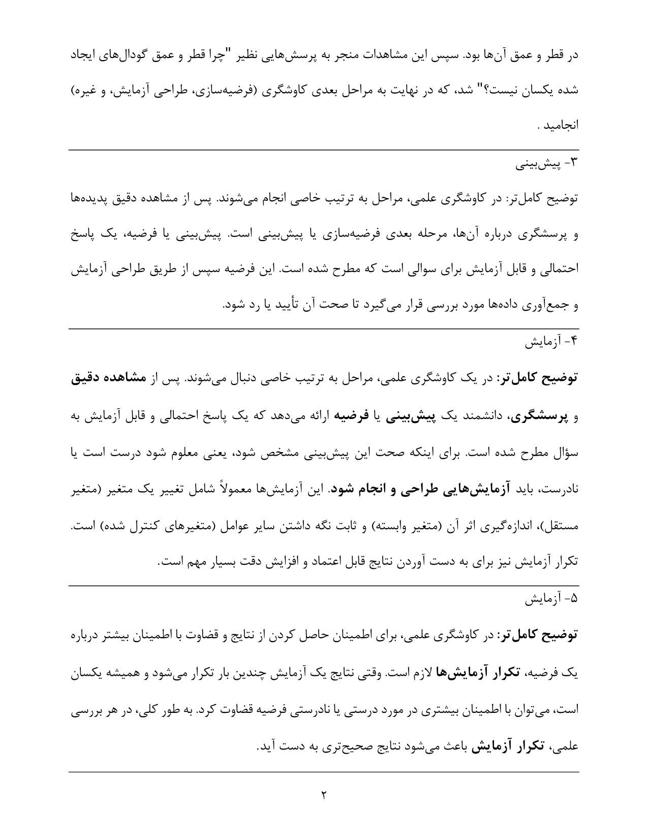 • لزوم تکرار مشاهده یا آزمایش برای اطمینان از صحت فرضیه.
