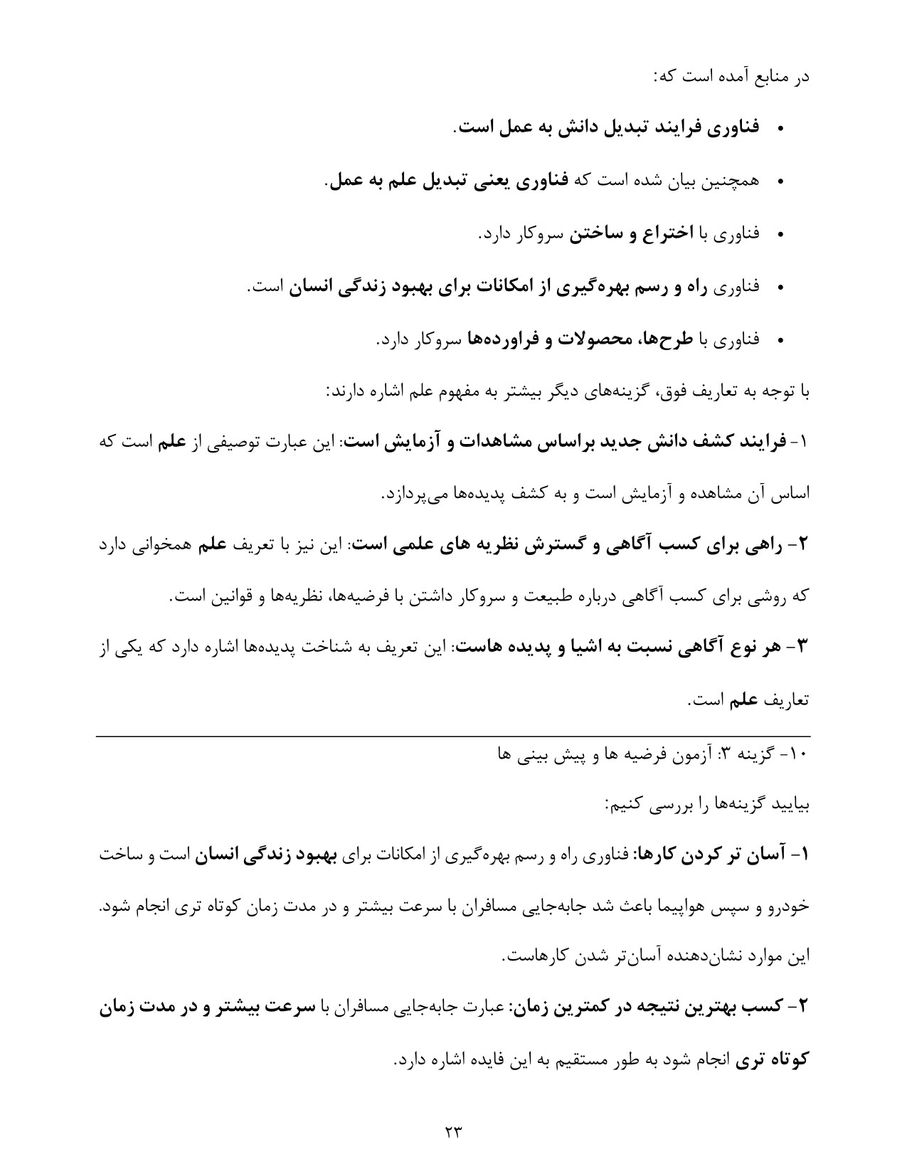 همان طور که در ابتدای همین صفحه از سایت درس من اشاره شد، در این پاسخنامه تمام پرسشهای جای خالی، کامل کردنی، درست و نادرست، تشریحی و تستی (چهار گزینهای) به طور جامع و مفصل جواب داده شدهاند. برخی از مفاهیم موجود در فصل یکم علوم هفتم عبارتند از:
