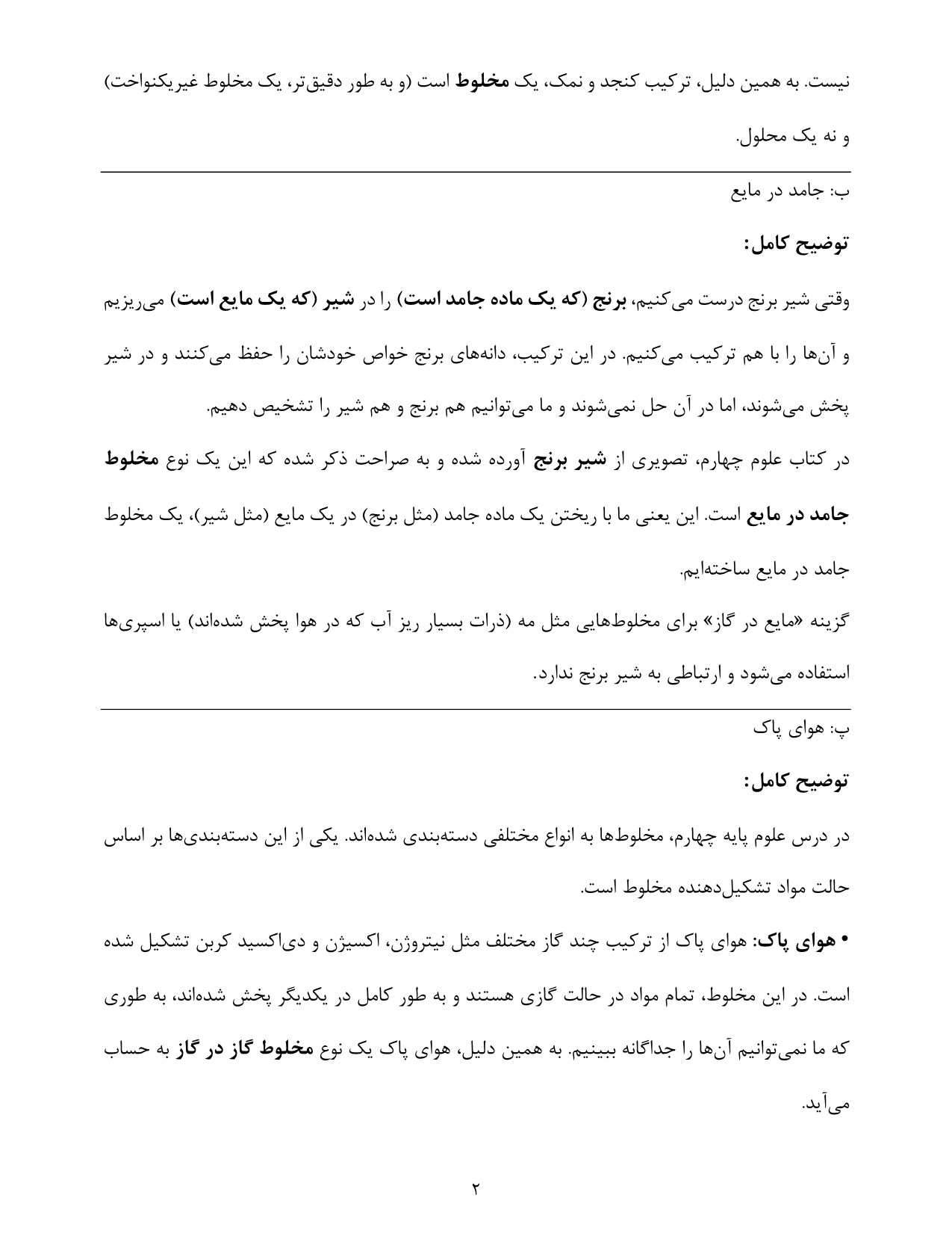 فصل / درس: فصل 2: مخلوط ها در زندگی
