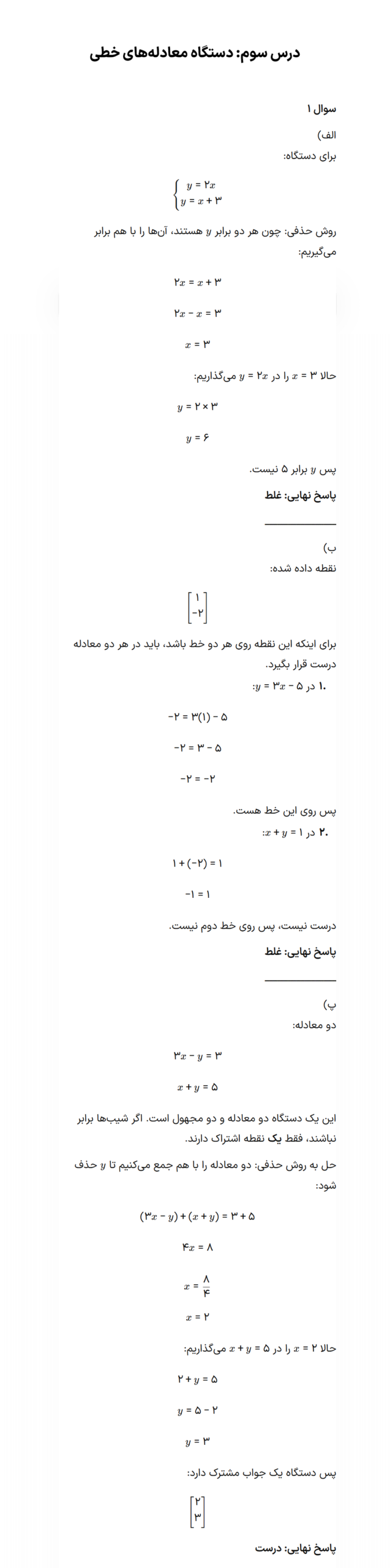 (فصل 6: خط و معادله‌های خطی)