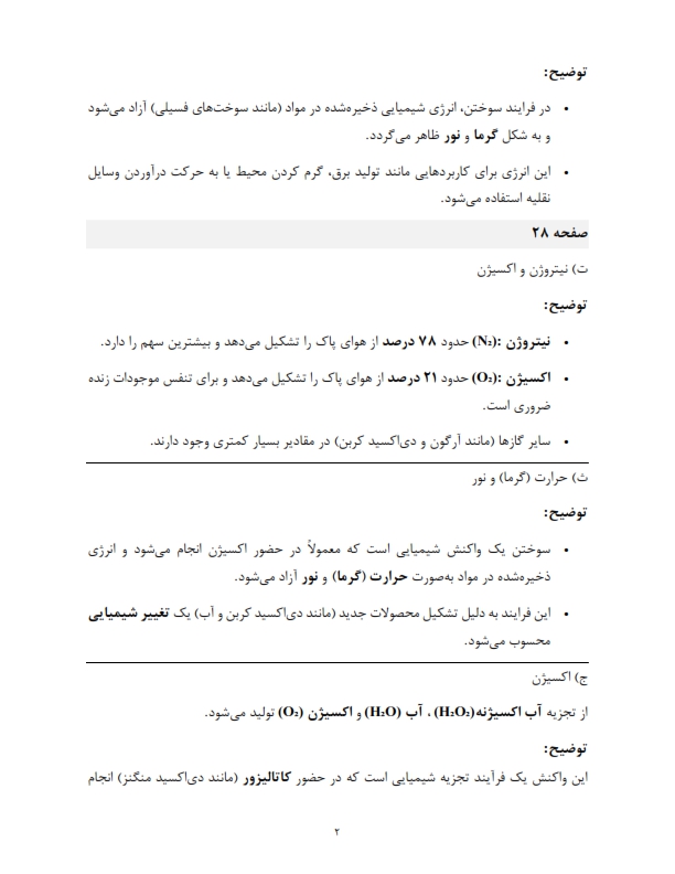 پاسخنامه کتاب کار علوم خیلی سبز هشتم، فصل 2 (تغییرهای شیمیایی در خدمت زندگی)َ، فوق جامع